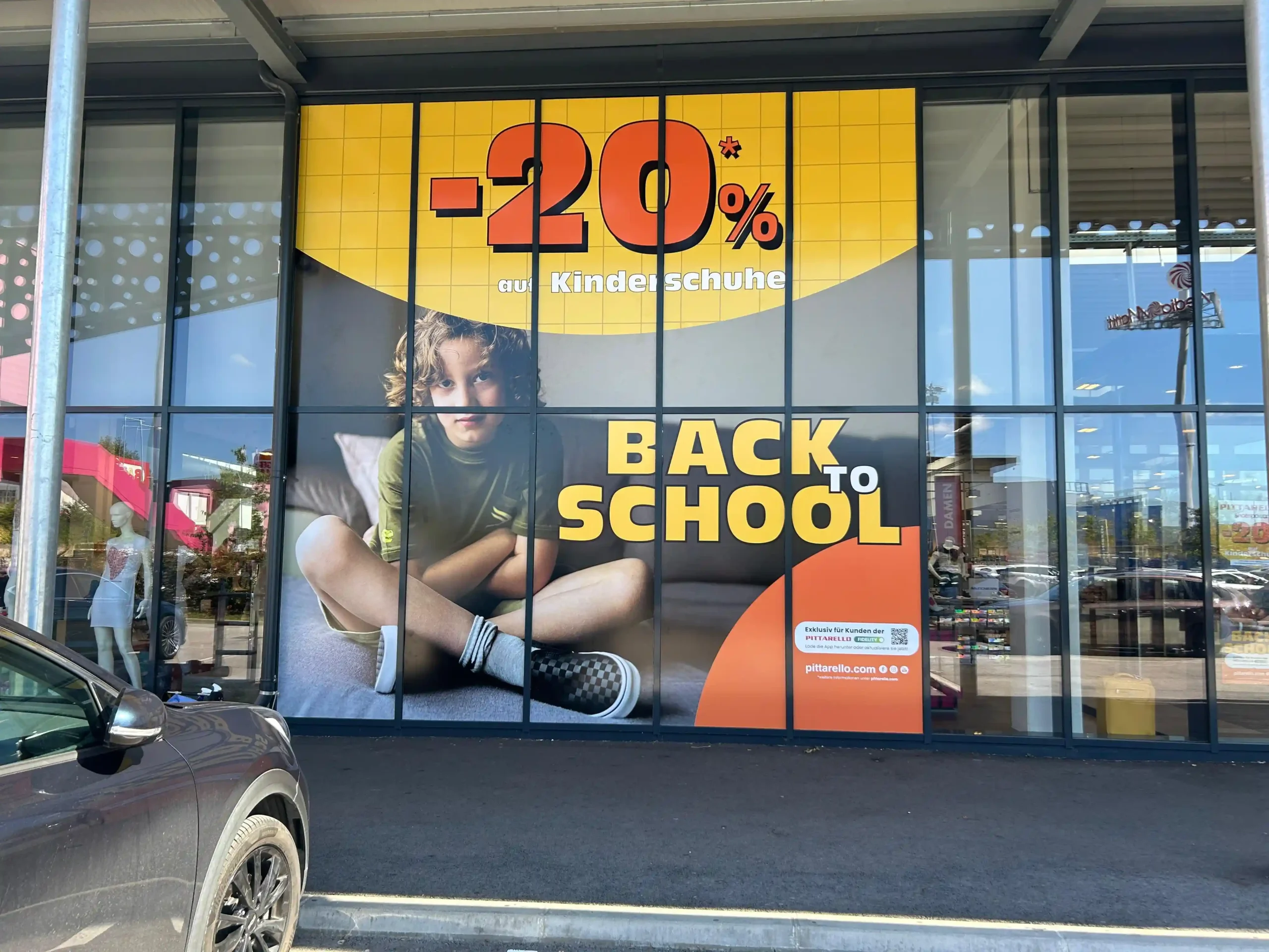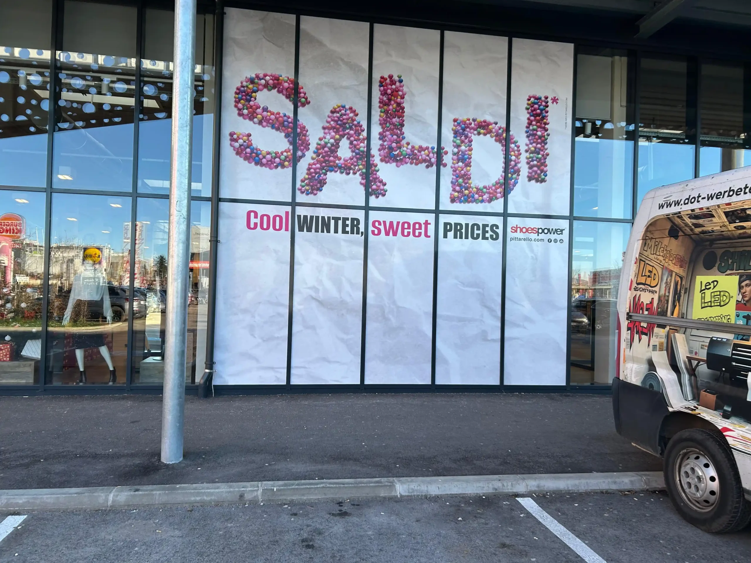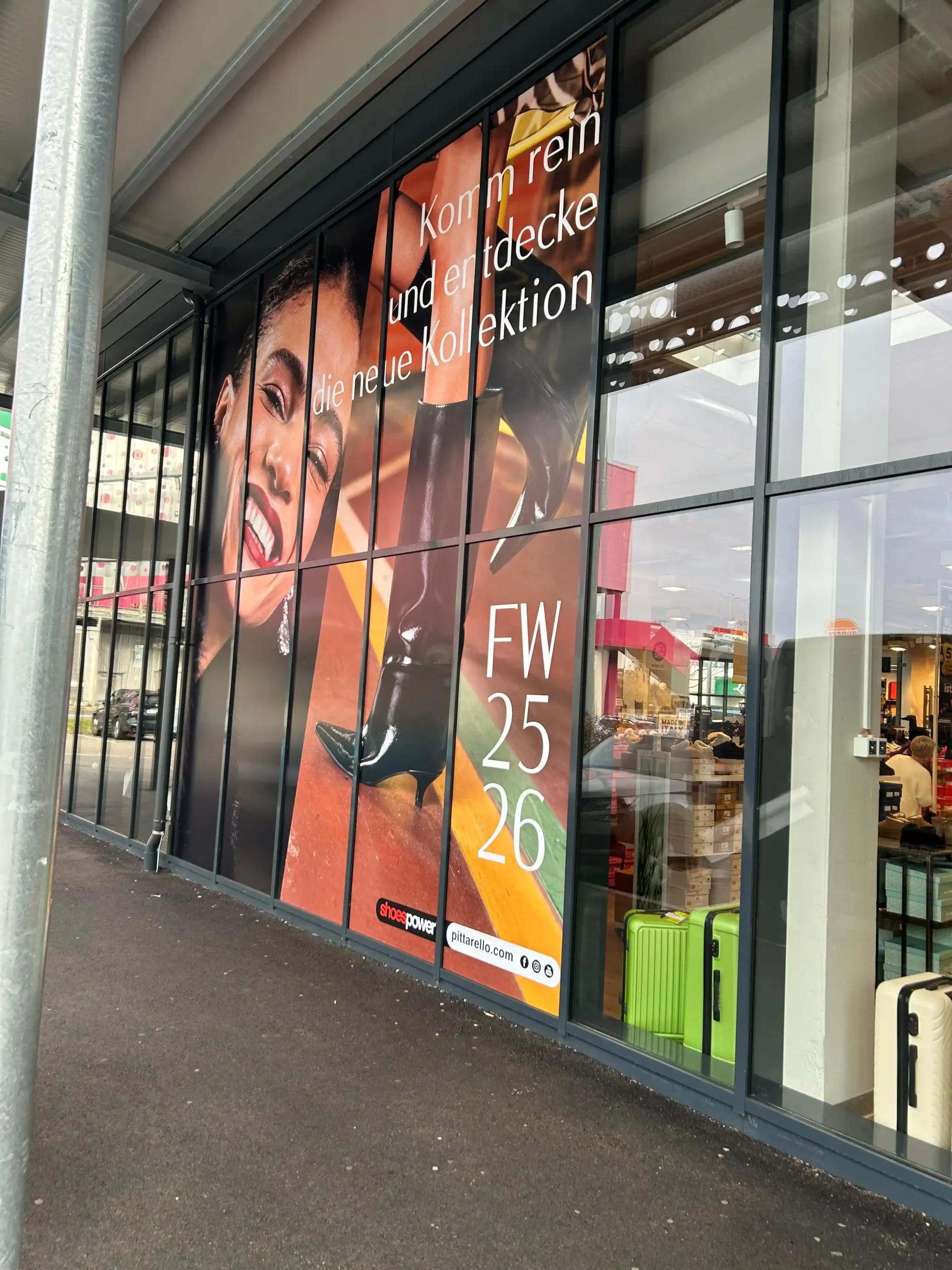 Die Gestaltungsmöglichkeiten sind vielfältig. Eine Schaufensterbeschriftung kann beispielsweise aus Ihrem Firmenlogo und Kontaktdaten bestehen oder als auffällige Aktionsbeschriftung genutzt werden, um auf Sonderangebote, Schlussverkäufe oder saisonale Aktionen hinzuweisen. Je nach dem geplanten Einsatz wählen wir spezielle Folien aus, die sich für kurz-, mittel- oder langfristige Anwendungen eignen.